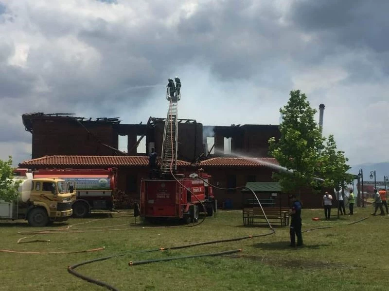 Samsun’un Çarşamba ilçesinde ahşap bir kafe-restoran alev alev yandı.