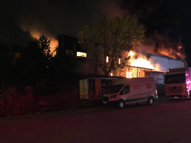 Fabrikadaki yangın itfaiye ekiplerince söndürülmeye çalışırken ekipler, alevlerin hemen bitişiğinde bulunan diğer depolara sıçramaması için yoğun çaba sarf ediyor.