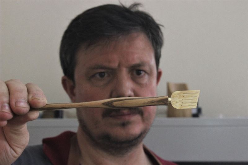 Bursalı hat kalemi ustası, el işçiliğiyle yaptığı kalemleri tanesi 175 liradan Hindistan’a satıyor.