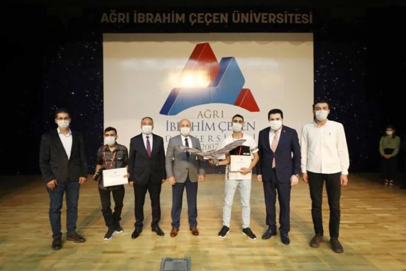 TÜBİTAK 2242 Üniversite Öğrencileri Araştırma Proje Yarışması TEKNOFEST Festivali “Savunma, Uzay ve Havacılık” kategorisinde Türkiye ikincisi olan AİÇÜ Meslek Yüksekokulu öğrencileri Habip Demirbaş ile Kemalettin Demirbaş’a başarı belgesi ve hediyelerinin verildiği tören, başarılı akademisyenlere ödüllerinin verilmesi ile sona erdi.