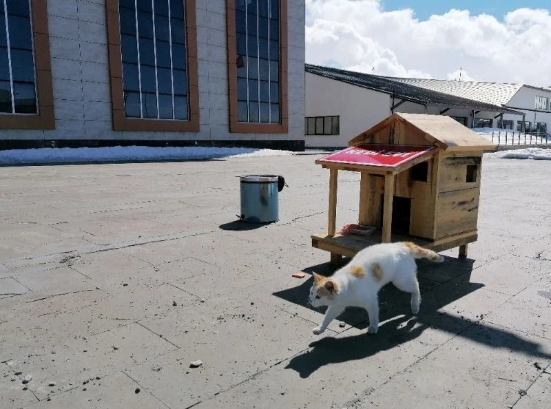 Ağrı İbrahim Çeçen Üniversitesi’nde kedi ve kuşların soğuk havalarda üşümemeleri için yapılan barınma evleri, merkezi kampüsteki belirli bölgelere yerleştirildi.