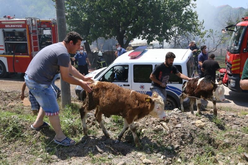 Kısa süre sonra olay yerine gelen itfaiye ekipleri yangını söndürmek için çalışma başlattı. Alevler otların tutuşması ile yanda bulunan evlere sıçramak üzereyken ekipler tarafından kontrol altına alındı. Olay yerine çağrılan iş makineleri ile iş makinelerinin yardımı ile yangın yaklaşık 1 saatte kontrol altına alınarak söndürüldü. Çıkan yangında can kaybı yaşanmazken, 2 ahır kullanılamaz hale geldi. Polis ekipleri olayla ilgili inceleme başlattı.