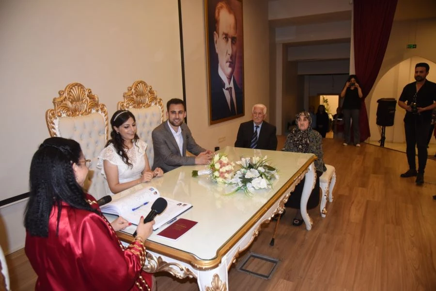 Daha sonra nikâh için yerlerini alan çiftlerin nikâhını şahitler ve katılımcılar huzurunda Osmaniye Belediyesi Evlendirme Müdiresi Hülya İnan kıydı.