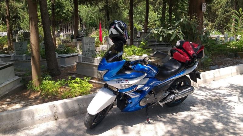 Ailesindeki şehitler anısına motosikletiyle 746 kilometre gidip şehitlikteki bayrakları yeniledi
