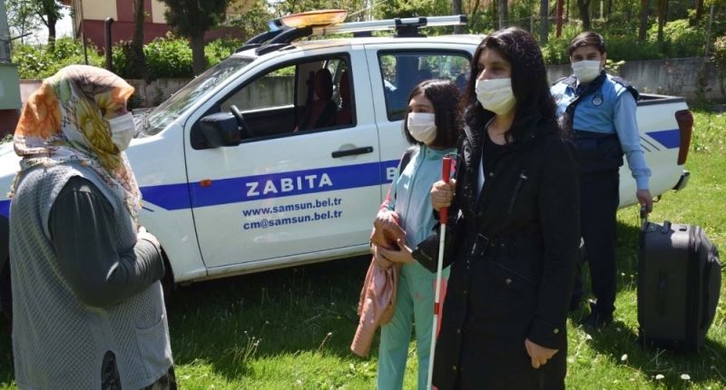 Samsun’da bayramı 5 aydır ziyaret edemediği ailesinin yanında geçirmek isteyen görme engelli kadın, kızı ile beraber Samsun Büyükşehir Belediyesi ekipleri tarafından Ladik ilçesindeki ailesinin yanına götürüldü.