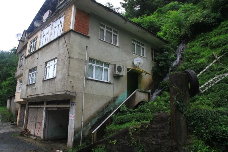 Dün öğle saatlerine başlayarak Rize’yi etkisi altına alan şiddetli sağanak yağmur nedeniyle bölgede bir çok evi su bastı. Bu evlerden biri de Akarsu köyündeki 3 katlı bina olurken, kiracı Mustafa Arıcı apartmanın duvarının yıkıldığını duyunca evde olan eşi ve 5 yaşındaki çocuğunu güçlükle evden çıkartarak kurtarabildi.