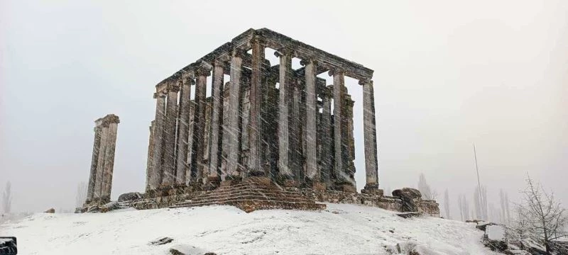 İkinci Efes olarak da nitelendirilen, kar yağmasıyla beyaza bürünen Aizanoi Antik Kenti ziyaretçilere ve fotoğraf çekmek isteyenlere eşsiz güzellikler sunuyor.