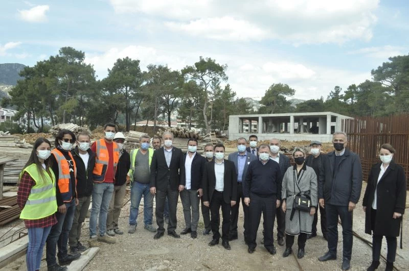İnşaat alanını gezerek işçiler ile sohbet eden ve yetkililerden bilgi alan AK Parti İl Başkanı Kadem Mete, "2020 yılında alınan tedbirler kapsamında yüzde 70‘i tamamlanmayan hiçbir projeye destek verilmiyordu. Ancak Marmaris’in en büyük ihtiyaçlarından biri olan Marmaris Devlet Hastanesi için bakanımız ile yaptığımız görüşmeler sonucunda projenin olurunu aldık. Yeni, modern, temiz bir hastaneye kavuşacağız. 2023 yılında tamamlanacak olan hastanemizin inşaatına başlamadan önce Orman Bakanlığımız ile yaptığımız anlaşma gereği önce Orman Bakanlığı’na bağlı lojmanları tamamladık. Yüklenici firmamız da sağ olsun hızlı bir şekilde çalışıyor. Şimdi hastanemizin kreş, teknik hizmet yönetim binaları çalışmaları başladı. Biz de hem çalışan arkadaşlarımıza moral olsun, hem yerinde görelim diyerek geldik. Allah’ın izni ile 2023 yılında yeni hastanemiz hizmete girmiş olacak" dedi.
