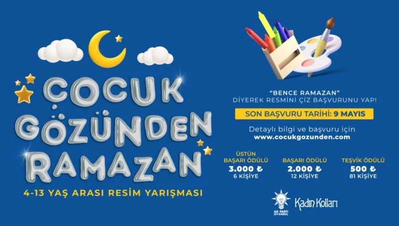 AK Parti İstanbul İl Kadın Kolları Başkanlığı tarafından düzenlenen 3. Geleneksel Çocuk Gözünden Ramazan temalı resim yarışmasına başvurular başladı. Çocukların, ramazan coşkusunun eve yansıyan hallerini resimle anlatması için gerçekleştirilen resim yarışmasına 4-13 yaş arası tüm çocuklar başvurabilecek. Dereceye girenler büyük ödüllerin de sahibi olacak.