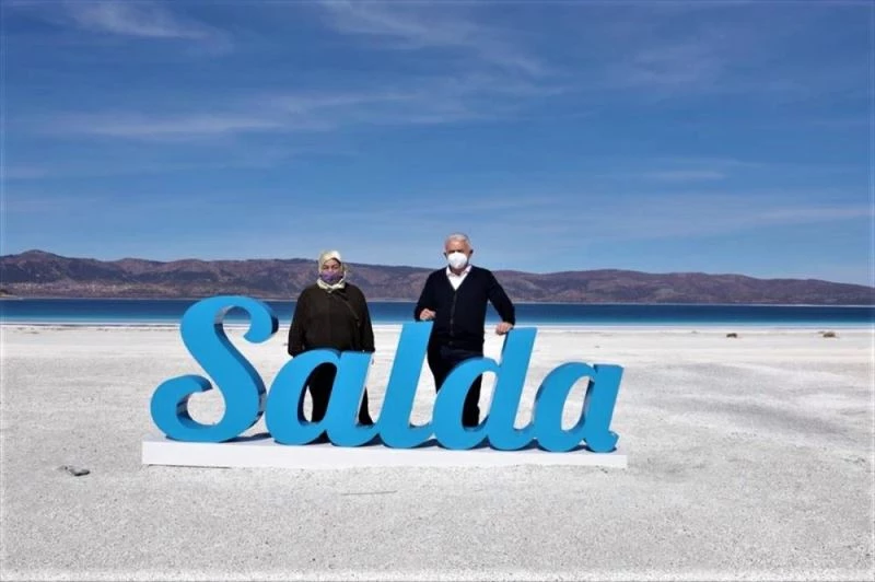 Daha sonra, Turkuaz suyu ve beyaz kumunun güzelliğiyle "Türkiye'nin Maldivleri" olarak ünlenen doğa harikası Salda Gölü'ne gelen Yıldırım, hatıra fotoğrafı çektirdi.