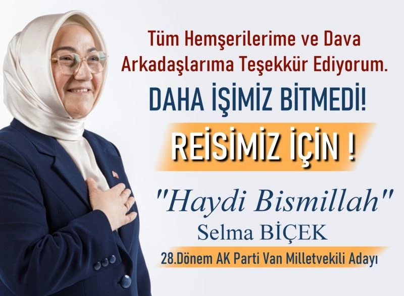 AK Parti 28. Dönem Van Milletvekili adayı Selma Biçek, teşekkür mesajı yayımladı.