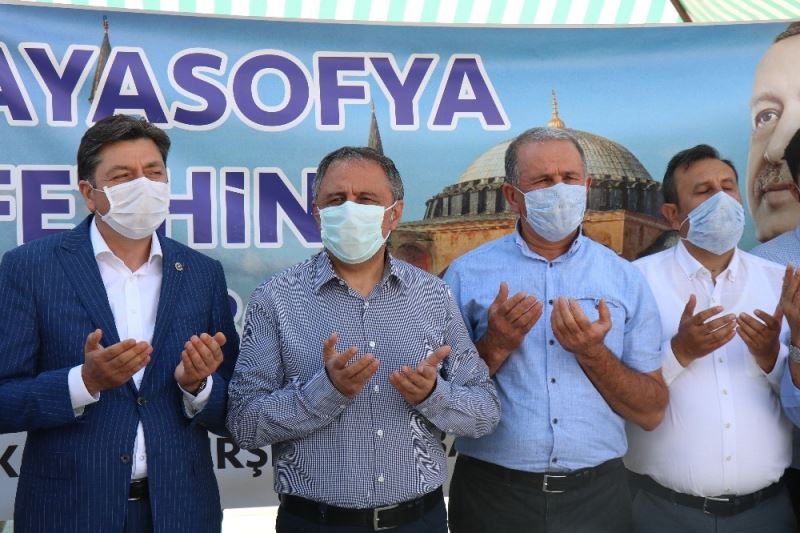 Anıt meydanda toplanan kalabalığa konuşan İl Başkanı Muzaffer Aslan ise, Ayasofya’nın tarihi hakkında bilgiler vererek fetih olduğunda Ayasofya’nın mezbahanelik ve harabe bir halde olduğunu belirtti. Açıklamaların ardından anıt meydanda vatandaşlara lokma dağıtımı yapıldı.