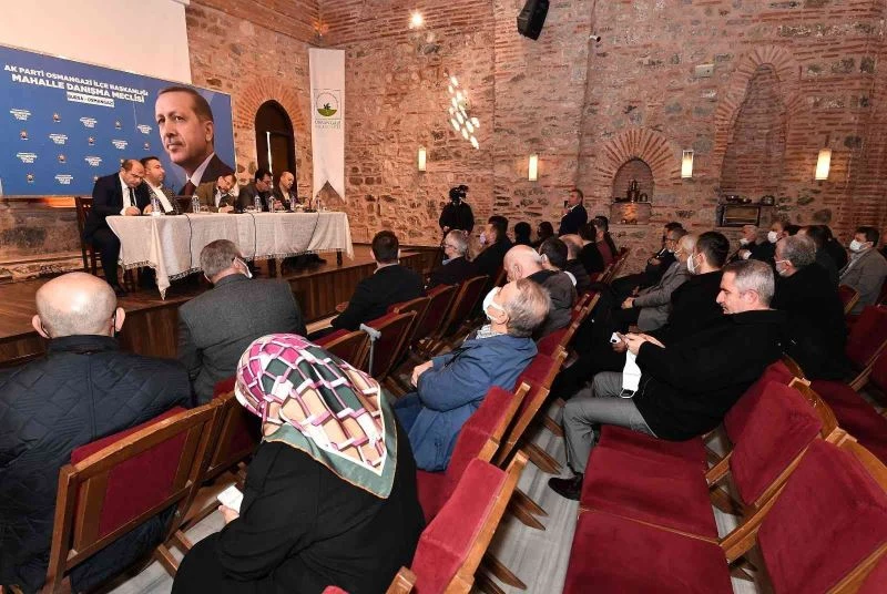 AK Parti Osmangazi İlçe Başkanlığı tarafından 25 mahalle muhtarı ile 25 mahalle başkanının katılımıyla düzenlenen buluşmaların 5’incisi Ördekli Kültür Merkezi’nde gerçekleştirildi. Bursa’nın merkezindeki mahallelerin taleplerinin masaya yatırıldığı toplantıya, TBMM İnsan Hakları İnceleme Komisyonu Başkanı ve AK Parti Bursa Milletvekili Hakan Çavuşoğlu, Osmangazi Belediye Başkanı Mustafa Dündar, Bursa Büyükşehir Belediye Başkan Vekili Murat Demir ve AK Parti Osmangazi İlçe Başkanı Ufuk Cömez katıldı.