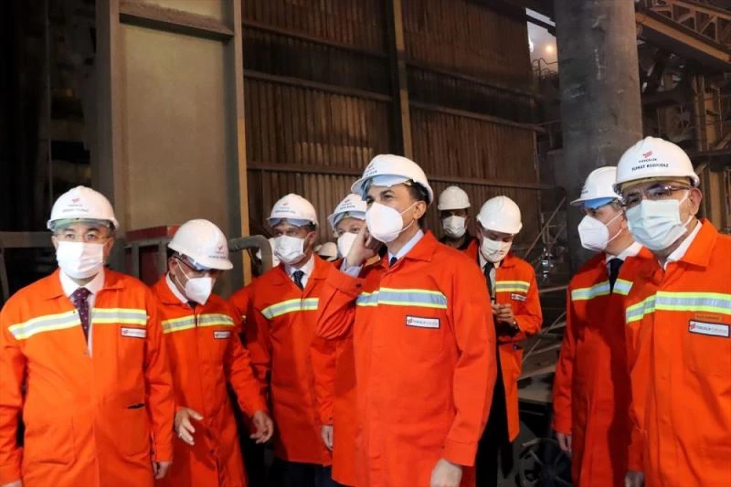 Firmaya ait fabrikayı gezen Çelik, işçilerle sohbet edip üretim tesislerini inceledi.