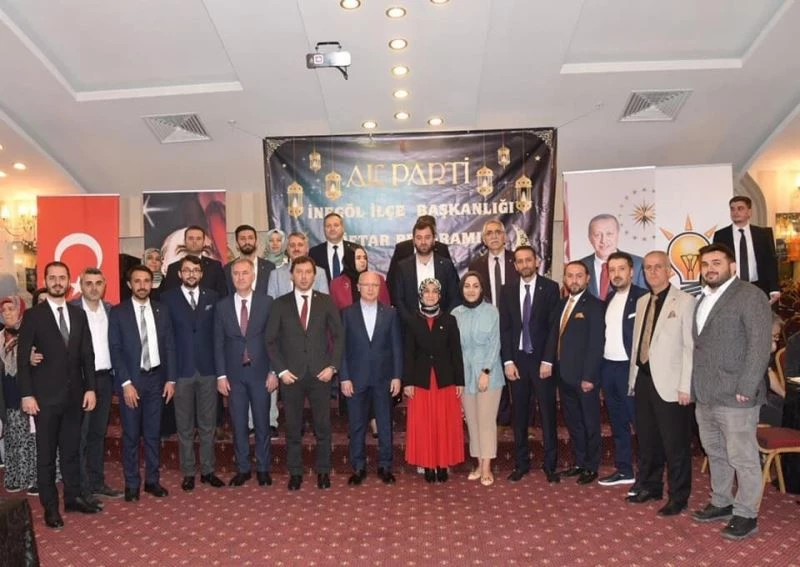 AK Parti Bursa İl Başkanı Davut Gürkan, AK Parti İnegöl İlçe Başkanlığı’nın düzenlediği teşkilat İftar yemeğine katıldı. AK Parti Genel Merkez MKYK Üyesi Ayhan Salman, AK Parti Bursa Milletvekili Vildan Yılmaz Gürel, İnegöl Belediye Başkanı Alper Taban ve ilçe teşkilat mensuplarının katılımı ile gerçekleştirilen İftar programında Başkan Gürkan partililere seslendi.