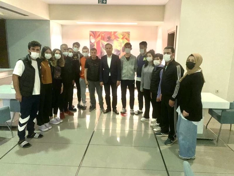 Meksika’da yapılacak turnuva ve Tokyo Olimpiyatları öncesi Çorum’da kamp yaparak turnuvaya hazırlanan Milli Takım antrenörü İlhan Aşkın ve sporcularla bir araya gelen Milletvekili Ahmet Sami Ceylan, hem çalışmalar hakkında bilgi aldı hem millilerin bayramını kutladı.
