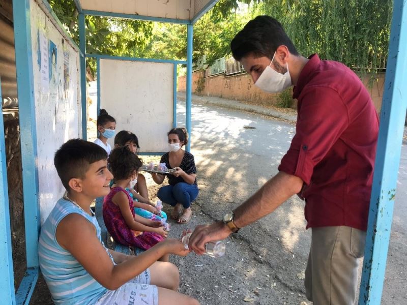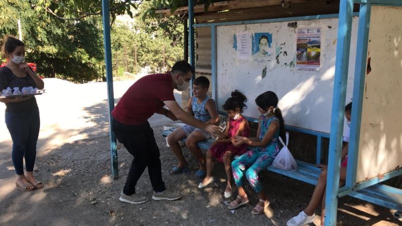 Ziyarette vatandaşlara maske ve şeker ikram eden ekipler çocuklarıda sevindi.Çocuklara kolonya ve şeker tutan ekipler, onlara bayram hediyesi de verdi.
