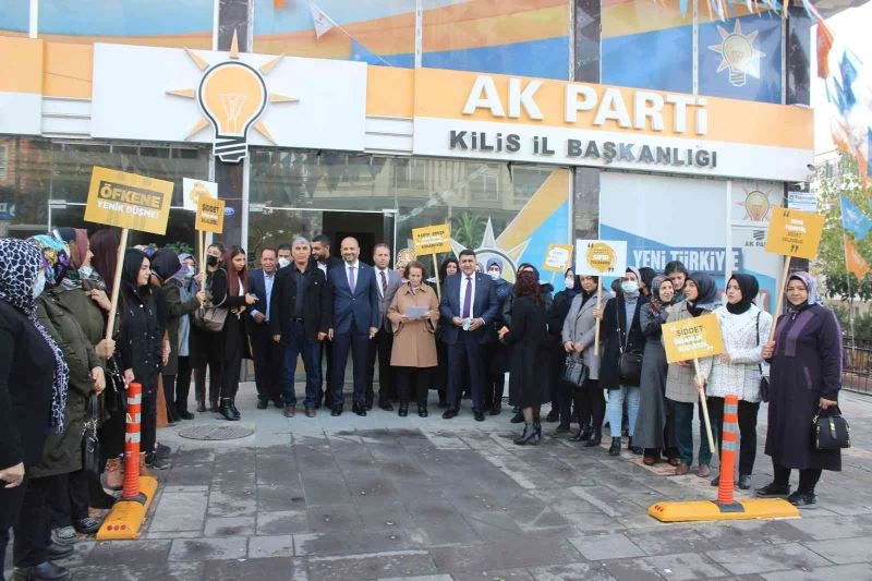 Basın açıklamasına AK Parti Kilis İl Başkanı Mehmet Murat Karataş, Kilis Merkez ilçe Başkanı Mehmet Nur Korkmaz, AK Parti Gençlik Kolları İl Başkanı Musa Kara, ve AK Partili kadınlar katıldı