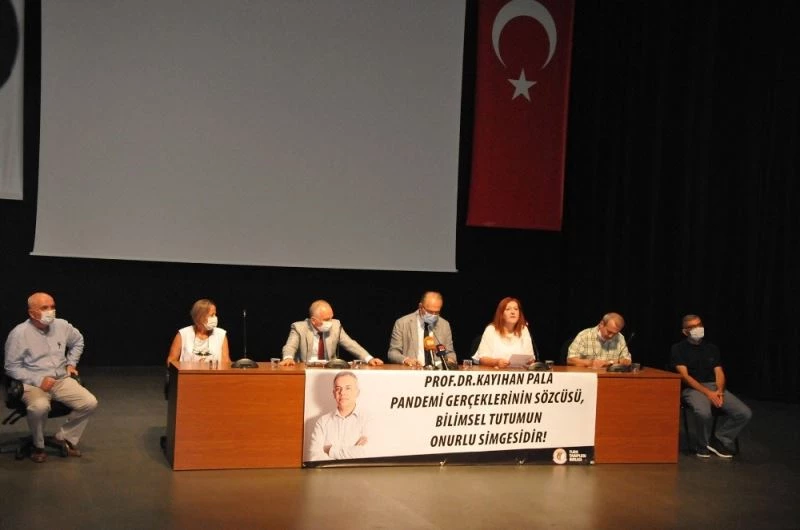 Bursa Tabip Odası’nca, Bursa Akademik Odalar Birliği (BAOB) Yerleşkesi’nde düzenlenen basın açıklaması, akademik meslek odalarının temsilcileri ve üyelerinin de katılımlarıyla gerçekleşti. Bursa Serbest Muhasebeci Mali Müşavirler Odası Başkanı Doğan Yılmaz’ın da katılımıyla gerçekleşen basın açıklamasında: “Yüzlerce yıldır, insan hakkı kabul edilen bu değerlere, iktidar sahipleri tarafından yöneltilen kimi tehditler bu kez Bursa’da Prof. Dr. Kayıhan Pala’yı hedef almıştır. Prof. Dr. Kayıhan Pala, bir halk sağlığı uzmanı, Türk Tabipleri Birliği Covid-19 İzleme Kurulu üyesidir. İnsanı, toplumu, bütün canlıları, içinde yaşadığımız çevre ile birlikte ele alan; insancıl, sağlıklı yaşamı, çalışmalarının merkezine oturtan; önleyici ve geliştirici kamusal sağlık politikaları konusunda emek veren bir akademisyendir. Bilimsel yöntemle üretilmiş bilgiyi, bilimsel bilgiye dayalı düşüncelerini, toplumla paylaşma sorumluluğunu büyük bir titizlik ve özenle yerine getiren nadir bilim insanlarından biridir. Prof. Dr. Kayıhan Pala, ülkemizi ve dünyayı saran pandemiye ilişkin önlemler konusunda, başından itibaren, yetkililere, topluma, düşüncelerini, önerilerini aktarmıştır. Bu kapsamda katıldığı internet haber sitesinde, 21 Nisan 2020 tarihinde kendisine yöneltilen sorular üzerine, Bursa iline yönelik pandemiyle ilgili bilgilendirmenin yetersizliği, verilerin tam olarak paylaşılmaması, çalışmaların şeffaf olmaması, filyasyon, test merkezi sayısının yetersizliği, Uludağ Üniversitesi Tıp Fakültesine test yetkisi verilmemesi, ücretsiz ya da sembolik ücretle su sağlanmaması gibi konularda, düşüncelerini, önerilerini, bilgilerini paylaşmıştır. Uludağ Üniversitesi Rektörlüğü soruşturma açmış ve 21 Temmuz 2020 günü saat 11.00’de Sayın Pala’yı savunma yapmak için çağırmıştır. Prof. Dr. Kayıhan Pala da doğru bilgiyi, en çok ihtiyaç duyulan dönemde topluma aktarmak için çaba gösteriyor. Hekimlik mesleğinin hasta ve toplum yararını önceleme ilkesi gereği, topluma salgınla ilgili bilimsel bilgilerin aktarılmasını engelleme girişimlerine derhal son verilmesini istiyoruz. Bilim insanının akademik özerkliğini ve mesleki bağımsızlığını tehdit eden soruşturmalar ve incelemeler asıl olarak toplumun sağlık hakkını, doğru bilgiye ulaşma hakkını tehdit etmektedir. Bundan vazgeçilmelidir” denildi.