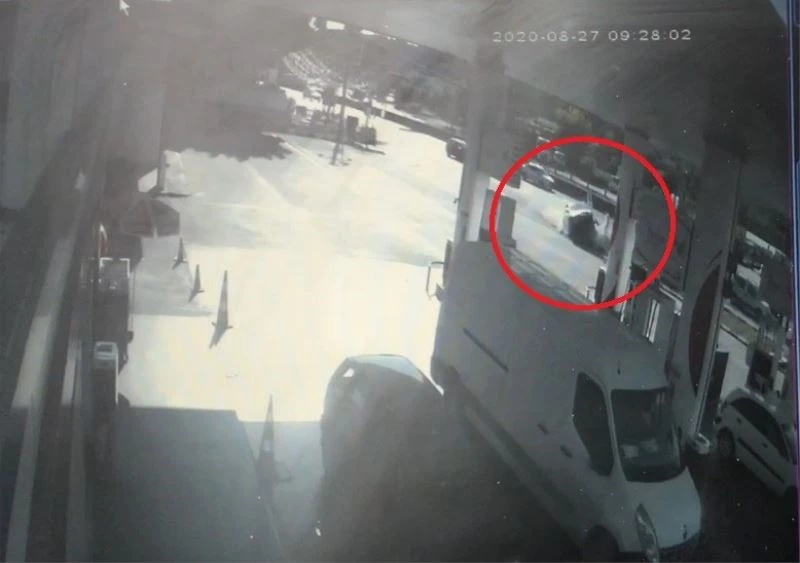 Polis ekipleri kazayla ilgili inceleme başlatırken, kaza anı saniye saniye istasyonda bulunan güvenlik kameralarına yansıdı. Görüntülerde otomobili yoldan çıkarak akaryakıt istasyonunda hızlı bir şekilde girdiği görülüyor. Otomobil önce akaryakıt güçlendirici tankına çarpıyor. Durumu fark ederek koşmaya başlayan akaryakıt görevlisi ise otomobilin altında kalıyor.