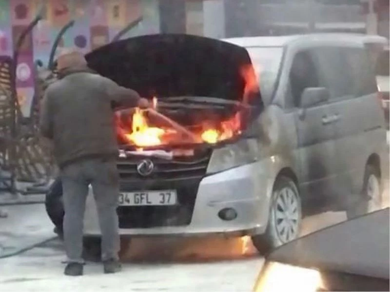 Akaryakıt istasyonunda araç alev aldı, facianın eşiğinden dönüldü