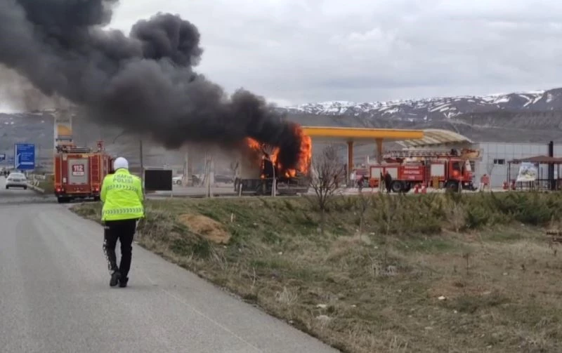 Erzincan’da bir akaryakıt istasyonunda alev alan kamyon itfaiye ekiplerinin müdahalesi sonucu söndürüldü.