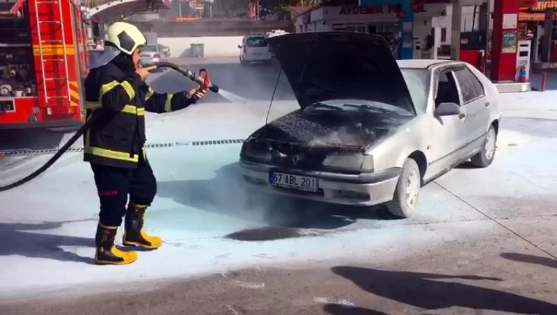 Zonguldak’ın Ereğli ilçesinde akaryakıt istasyonuna giren otomobilde çıkan yangın paniğe yol açtı.