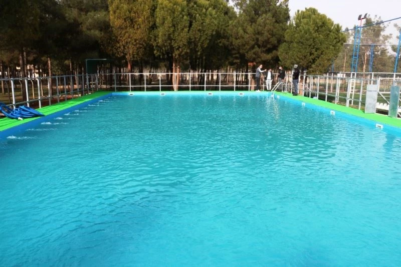Akçakale Belediyesi Başkanı Mehmet Yalçınkaya’nın girişimleri ile kente kazandırılan portatif yüzme havuzunun kurulumu tamamlandı.