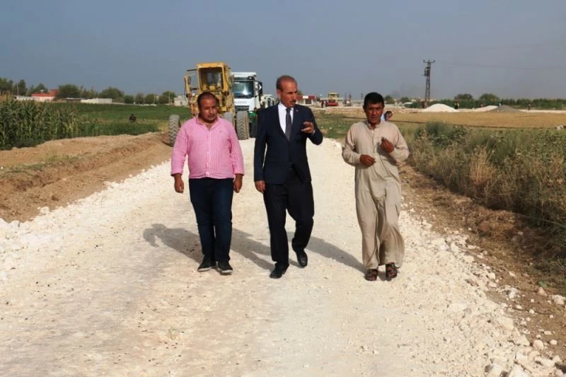 Akçakale Belediye Başkanı Mehmet Yalçınkaya, Kepezli-Uzunyol kırsal mahallelerinde yürütülen yol yapım çalışmalarını yerinde inceledi.