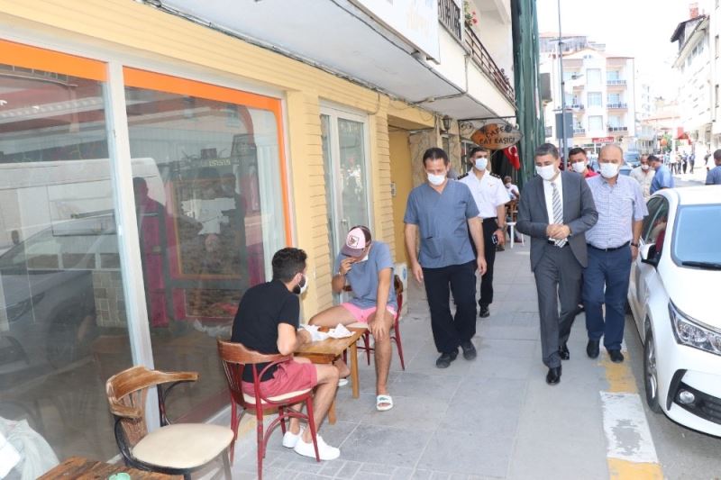 DÜZCE (İHA) – Akçakoca İlçe Kaymakamı Yasin Öztürk, Akçakoca Belediye Başkan Yardımcısı ile birlikte maske ve sosyal mesafe denetimi yaptı.
