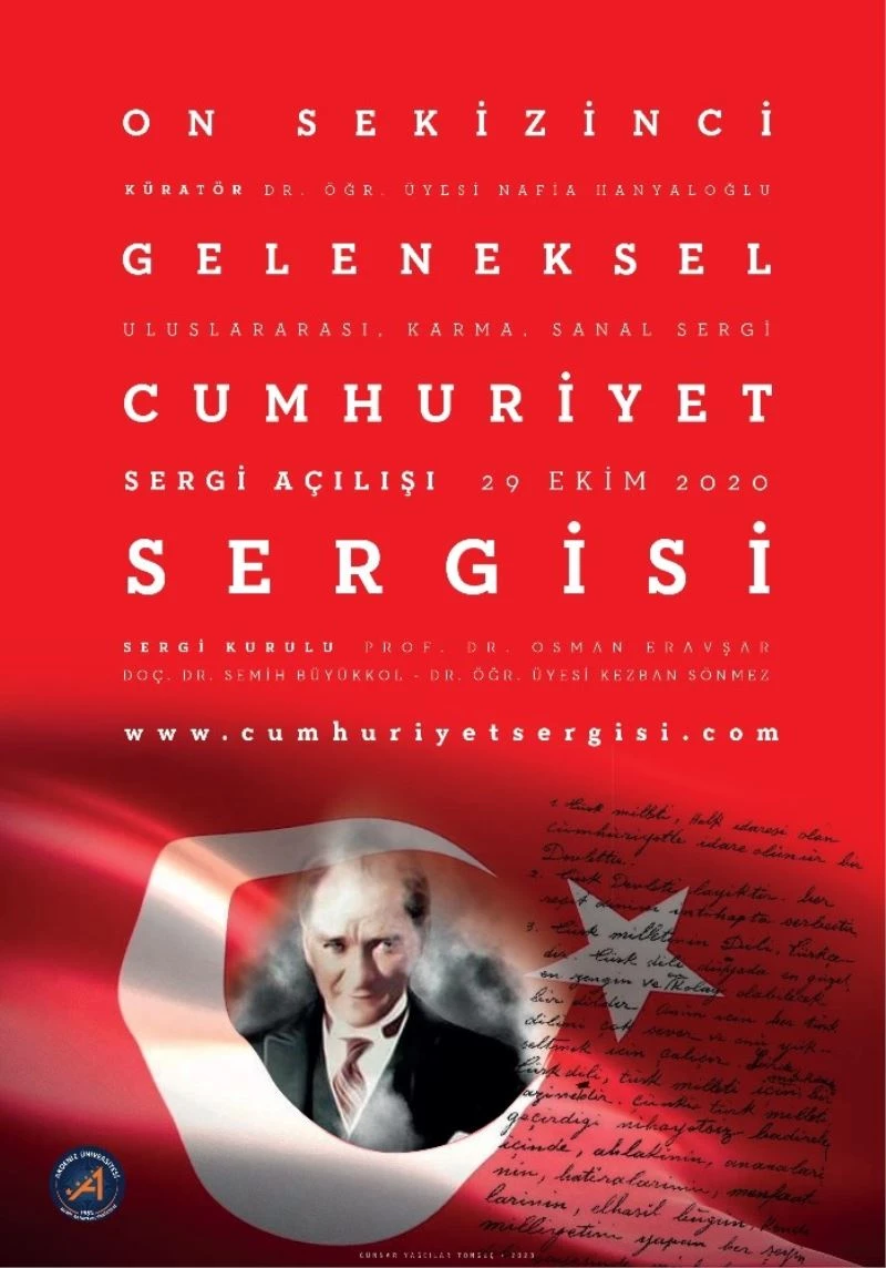 Akdeniz Üniversitesi Güzel Sanatlar Fakültesi tarafından geleneksel olarak düzenlenen ‘Uluslararası Cumhuriyet Sergisi’ pandemi nedeniyle ilk kez sanal olarak gerçekleştiriliyor.