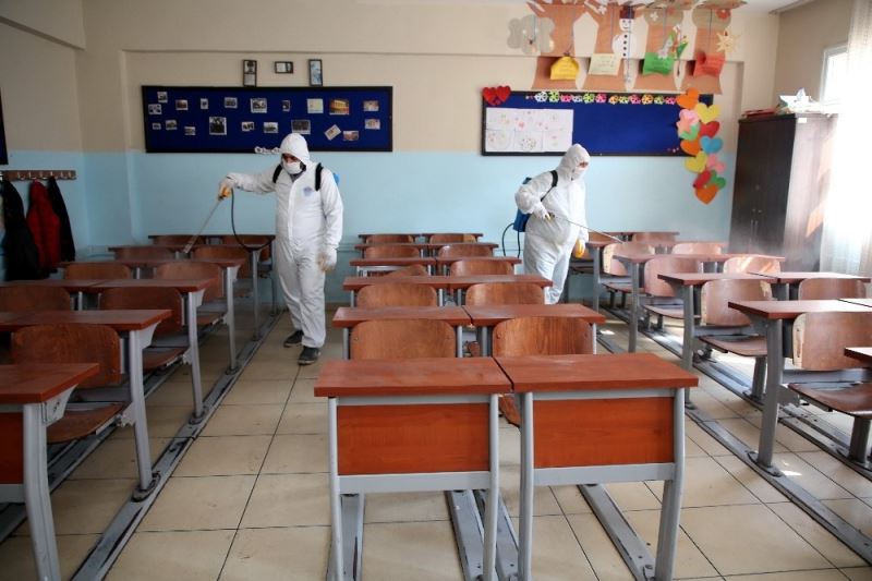 Özel kıyafetler giyen mobil ekipler, hafta sonu yapılacak olan LGS sınavında Akdeniz ilçesinde bulunan 122 okul arasından, sınav merkezi olarak belirlenen 40 ortaokul ve ilkokulda dezenfekte çalışmaları başlattı. Ekipler, sınavın yapılacağı sınıfları, insan sağlığına zarar vermeyen kimyasallarla ilaçlarken, öğretmenler odası, okulların bahçesi, koridorlar, tuvalet ve lavabo gibi yerler ile çöp kovaları dezenfekte ediliyor.