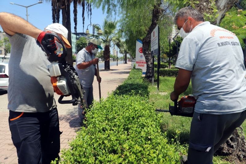 Akdeniz Belediyesi, korona virüs salgını kapsamında başlayan kontrollü sosyal hayat ile birlikte insanların uğrak yerlerinden biri olan park ve yeşil alanlara yönelik bakım ve ilaçlama hizmetlerini yoğunlaştırdı.