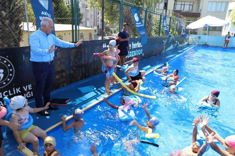 Akdeniz ilçesinde artık geleneksel hale gelen ve her yaz yüzlerce çocuğun ücretsiz yüzme öğrendiği, arkadaşlarıyla da yaz sıcağının keyfini çıkardığı kursların bu yılki ayağı yoğun ilgi altında gerçekleşiyor. Kültür Sosyal İşler Müdürlüğünce 2 Temmuz Madımak Barış ve Kardeşlik Parkı içine portatif bir yüzme havuzu kuruldu. Uzman eğitmenler ve cankurtaranlar gözetiminde, 28 Haziran’da başlayan bu yılki kursa 2009 ile 2015 doğumlu Akdenizli çocukların başvuruları alındı.