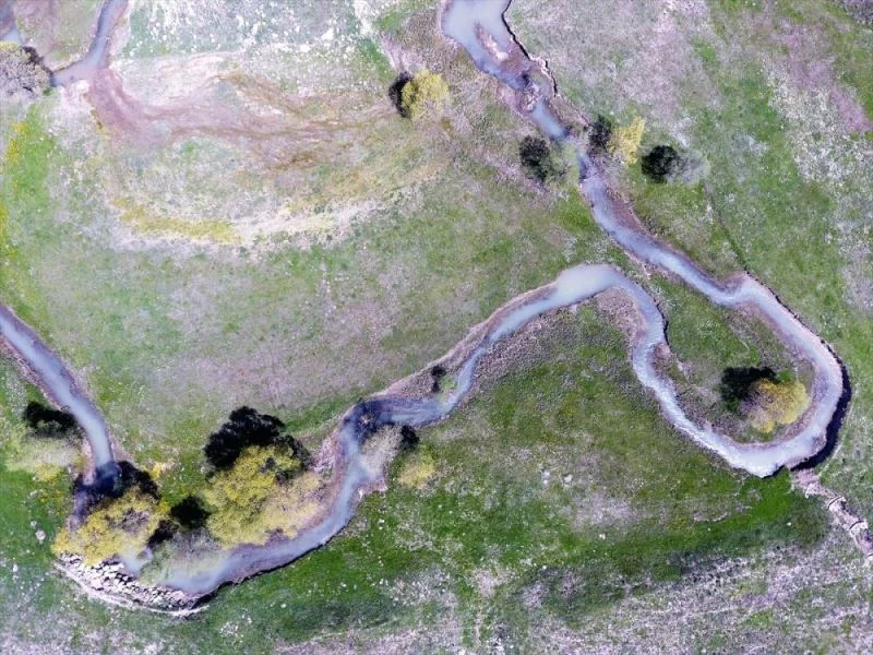 KAHRAMANMARAS (AA) - ISMAIL HAKKI DEMIR - Kahramanmaras'ta soguk havasi nedeniyle "Akdeniz'in Sibiryasi" olarak anilan Göksun ve Andirin ilçelerinin sinirinda, karin erimesiyle derelerde olusan menderesler büyüleyici güzellikleriyle etkiliyor.