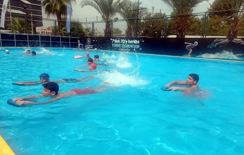 Akdenizli çocuklar hem yüzme öğreniyor hem havuz keyfi yaşıyor