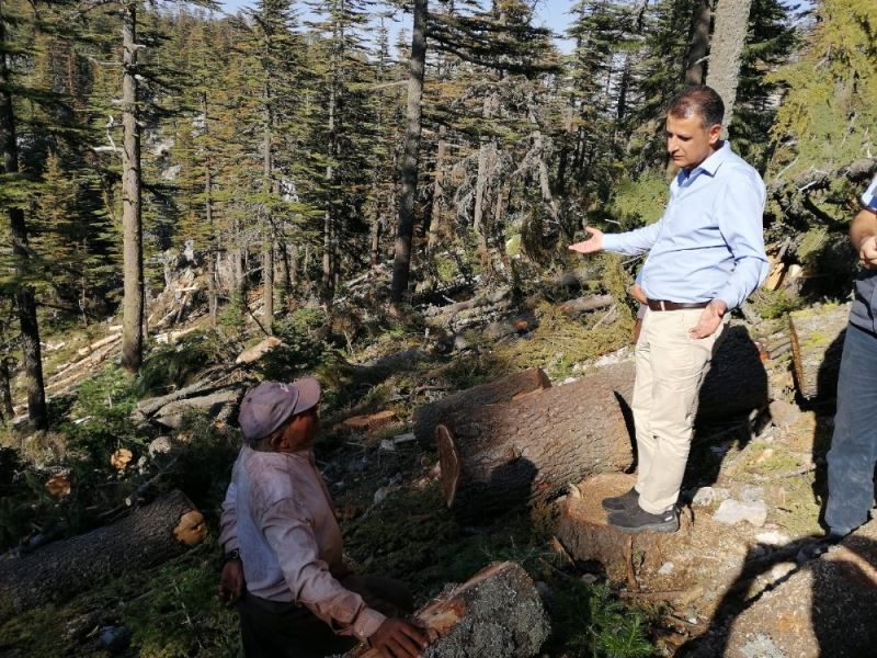 Abanoz ve Kesmece şefliklerindeki sedir gençleştirme sahalarını ve sedir üretim sahalarındaki çalışmaları da yerinde inceleyen Akduman, 3 hafta önce verdiği talimatlara istinaden Kesmece Şefliği 363 nolu bölmede 31 hektarlık alanda yapılan 10 bin metreküp tohumlama damgasının üretime verilmesinden dolayı işletme müdürünün nezdinde emeği geçen tüm personele teşekkür etti.