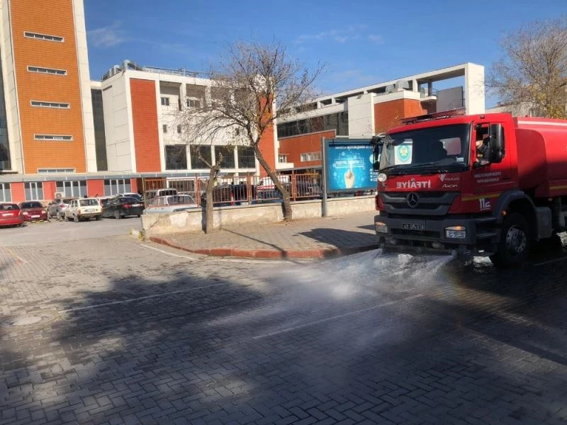 Tüm dünyayı etkisi altına alan korona virüsle mücadele çalışmalarını sürdüren Manisa Büyükşehir Belediyesi, Akhisar’da hastane önlerinde ve 112 acil noktalarında dezenfeksiyon uygulaması yaptı.