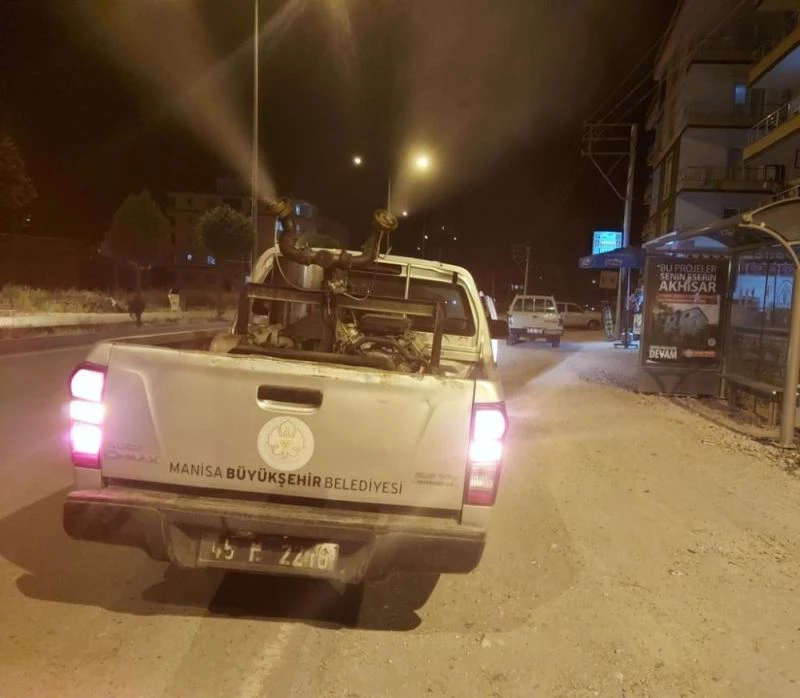 Manisa Büyükşehir Belediyesi Sağlık İşleri Dairesi Başkanlığı ekipleri, 17 ilçede haşereyle mücadele çalışmalarını aralıksız sürdürüyor. Bu kapsamda Haşere İle Mücadele Şube Müdürlüğü ekipleri, Akhisar’da da cadde, sokak ve yeşil alanlarda ilaçlama çalışması gerçekleştirdi.