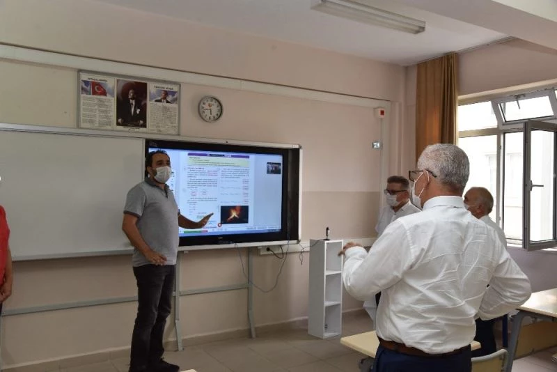 Denizli İl Milli Eğitim Müdürü Mahmut Oğuz, 31 Ağustos Pazartesi günü başlayacak olan uzaktan eğitim için gerçekleştirilen çalışmaları inceledi. Okullarda bulunan etkileşimli tahtaların uzaktan eğitimde etkin rol oynayacağını beliirten Oğuz, “Problemleri minimuma indiren bir çalışma olacak” dedi.