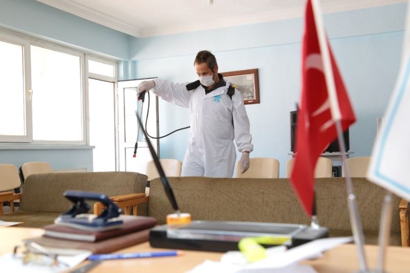 Aksaray Belediyesinin bünyesinde oluşturduğu dezenfekte ekibi, pandemi sürecinin en başından beri toplu kullanım alanlarını mikrop ve virüsleri yok eden antiviral özelliğe sahip hijyen ürünleri ile dezenfekte ediyor. Belediye Başkanı Evren Dinçer’in talimatları doğrultusunda çalışmalar yürüten Aksaray Belediyesi ekipleri geçtiğimiz günlerde okullarda ve kamu kurumlarında dezenfekte çalışması gerçekleştirdi. Halk sağlığını her şeyin üzerinde tutan Aksaray Belediyesi iş merkezlerinde de dezenfekte çalışmaları yaptı.