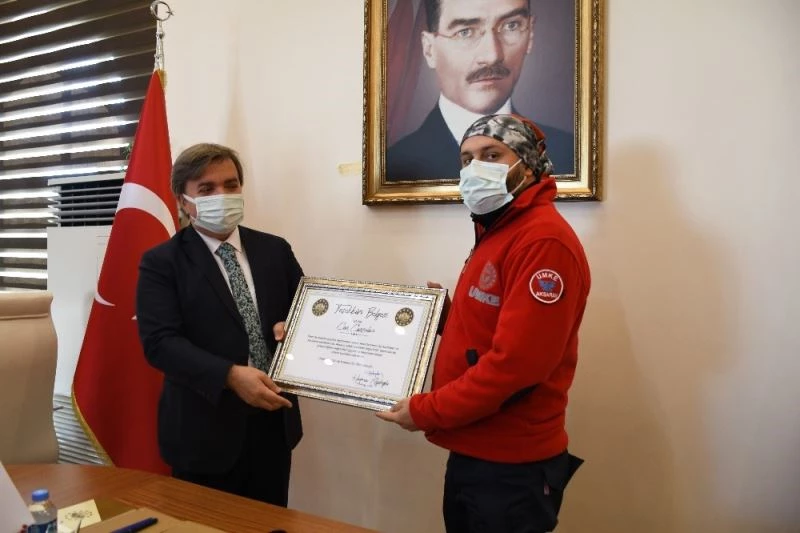 Aksaray’a dönen UMKE ekibine Vali Aydoğdu’dan başarı belgesi