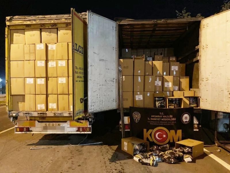 Edinilen bilgiye göre, Aksaray - Adana Karayolu üzerinde bulunan İl Emniyet Müdürlüğü Kaçakçılık ve Organize Suçlarla Mücadele (KOM) Şubesi uygulama noktasında rutin yol kontrolü yapan KOM ekipleri şüphe üzerine 2 tırı durdurdu. Ehliyet ve ruhsat sorduğu tır sürücülerin tedirgin hal ve hareketlerinden şüphelenen KOM ekipleri tırları aramak için kontrol noktasına çekti. Burada 2 tırda yapılan aramalarda bin 970 koli içerisine gizlenmiş toplam 19 ton 700 kilogram kaçak tütün ele geçirildi. Araç sürücüleri N.Y. (20) ve Ç.N. (31) hakkında 5607 sayılı Kaçakçılıkla Mücadele Kanunu kapsamında adli işlem yapılırken olayla ilgili soruşturma sürüyor.