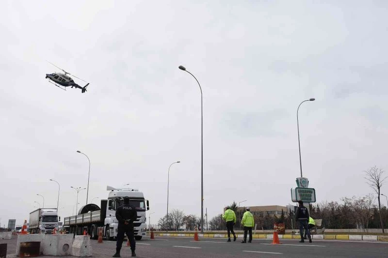 Aksaray İl Emniyet Müdürlüğü, helikopter destekli trafik uygulaması ile karayollarında denetim yaparak kilometrelerce uzaktaki sürücülerin ihlallerini tespit etti.