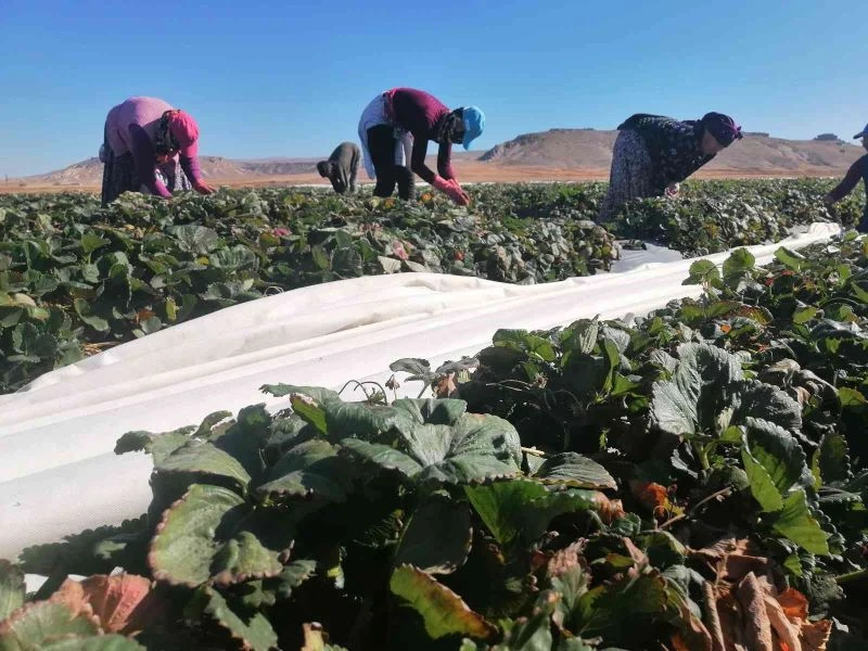 Aksaray’da Kasım ayında tarlada çilek hasadı mesaisi sürüyor