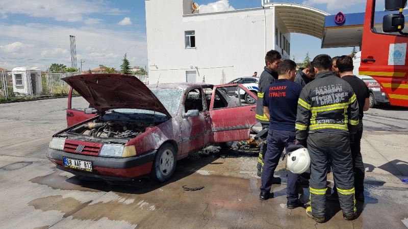 Olay, Çiftlik Mahallesi’nde bir akaryakıt istasyonunda meydana geldi. Edinilen bilgiye göre, LPG aldıktan sonra yoluna devam etmek için 68 AAF 813 plakalı otomobilini çalıştıran Sinan Koca (40), 10 metre gitmeden otomobil aniden alev aldı. 3 çocuğu ve eşiyle hemen arabadan inen sürücü ve çevredeki vatandaşlar durumu itfaiyeye bildirdi. Kısa sürede otomobil alevlere teslim olurken, olay yerine gelen Aksaray Belediyesi İtfaiye Müdürlüğü ekipleri yangına müdahale ederek söndürdü. Otomobilin içi adeta küle dönerken, yangının neden çıktığı konusunda inceleme başlatıldı.