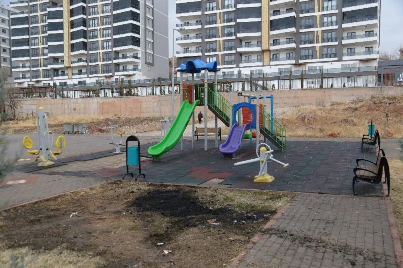 Aksaray’da oyun parkının zeminlerini sökerek yaktılar