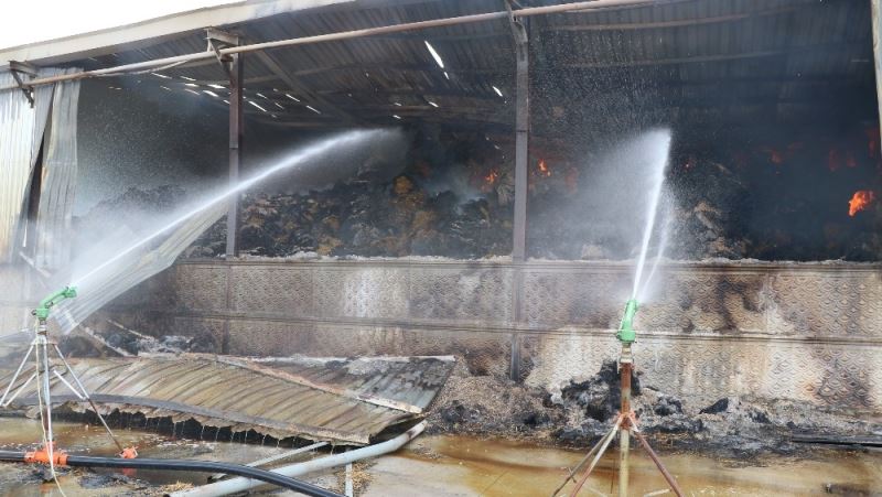Halen alevlere teslim olan yem fabrikası ve yonca deposundaki yangının tamamen söndürülmesinin birkaç günü bulması tahmin ediliyor.