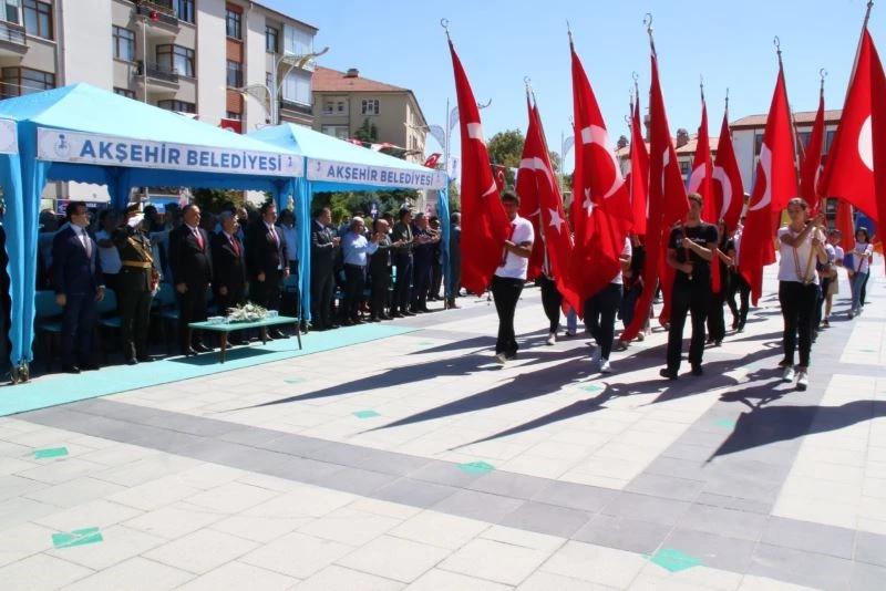 Cumhuriyet Meydanı’ndaki törene Akşehir Kaymakamı İsmail Küreci, Garnizon Komutanı Vekili Yarbay İbrahim Polat, Belediye Başkanı Salih Akkaya, ilçe protokolü, siyasi parti temsilcileri, şehit yakınları, gaziler ve vatandaşlar katıldı. Törende Atatürk Anıtı’na çelenklerin koyulmasının ardından saygı duruşunda bulunuldu ve İstiklal Marşı okundu. Protokolün alanda bulunanların bayramını kutlamasının ardından günün anlam ve önemini belirten konuşmayı Üsteğmen Hasan Arslan yaptı. Öğrencilerin şiirler okumasının ardından Akşehir Belediyesi Bandosu eşliğinde yapılan geçit töreni ile kutlama sona erdi.