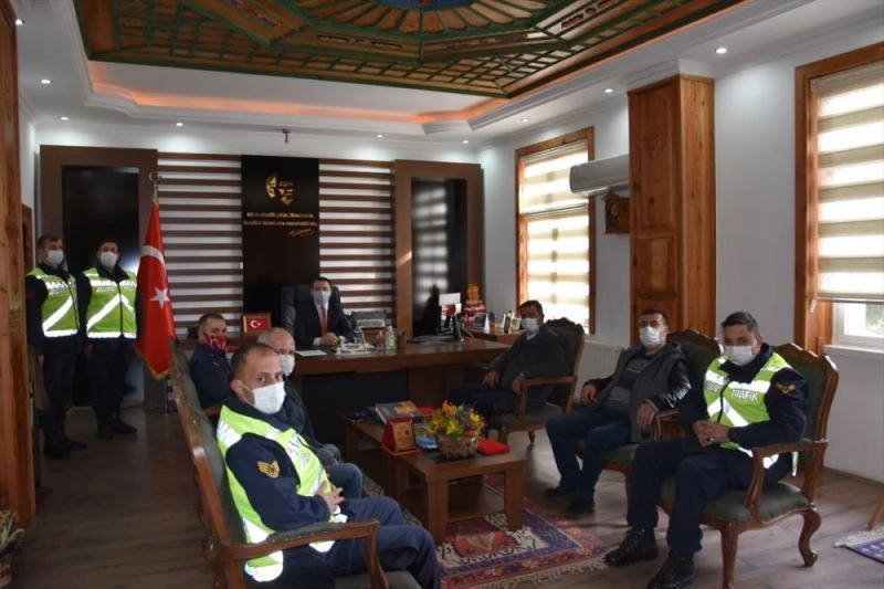 Kaymakam Hülür ile İlçe Jandarma Komutanı Teğmen Onur Yaldırak'ın da katıldığı törende, çeşitli meslek gruplarından son beş yılda trafik kazasına karışmayan, hakkında trafikle ilgili idari para cezası düzenlenmeyen 3 kişiye plaket verildi.